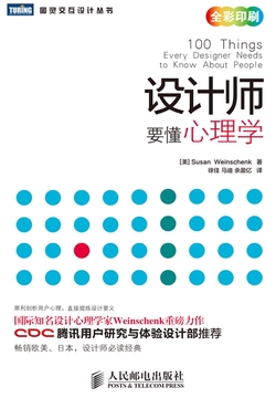 《设计师要懂心理学》出自国际知名的设计心理学博士SusanM.Weinschenk之手,内容实用,示例清晰,以创造美观实用的设计为宗旨,讨论了设计师必须了解的100个心理学问题,每个问题都配以权威经典的示例,并给出即学即用的设计建议,篇幅简短,让你轻松理解设计背后的心理学动机,拓展视野,创新思维,为你的设计打造全新用户体验。
