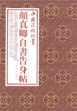 《自书告身帖》是颜真卿于唐德宗建中元年(公元780年)被委任为太子少保时自书之告身。颜真卿写这篇告身时已是七十二岁高龄。他的书法也已达到炉火纯青的境界。这一年他还书写了《颜氏家庙碑》,和《自书告身帖》同是他晚年的力作,历来为世所珍重。真迹原藏清内府,现藏于日本东京台东区中村不折氏书道博物馆。《颜真卿〈自书告身帖〉》选取原作画心部分,前有出版说明,后有繁体释文(断句)以便学书者对照学习。经折装的装帧形式则可以最大程度地呈现原帖的风貌。